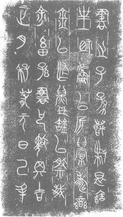 | 释义 | “栾书”缶错金铭文春秋晚期(晋国)。北京中国历史博物馆藏。《栾书缶》是栾书祭祀祖先时盛酒的用具。器身及盖各有四环纽,纽作斜角云纹,自颈、肩及于上腹有错金铭文五行40字,盖内铸铭文两行8字,大篆体。错金镶嵌铭文始于春秋中期,多见于兵器,铭文往往数字,像《栾书缶》这样长篇错金铭文,十分罕见。春秋晚期的晋国正体篆书逐渐被简易的写法取代,“草篆”开始流行,具有地区性特征的文字和书法正以全新姿态出现于历史舞台,《栾书缶》铭文即为这种形势下的产物。它十分精美,文字异体较多,字呈纵势,草篆结构奇诡而神秘,章体雍容华贵,线条圆润婉转,显得婀娜多姿。