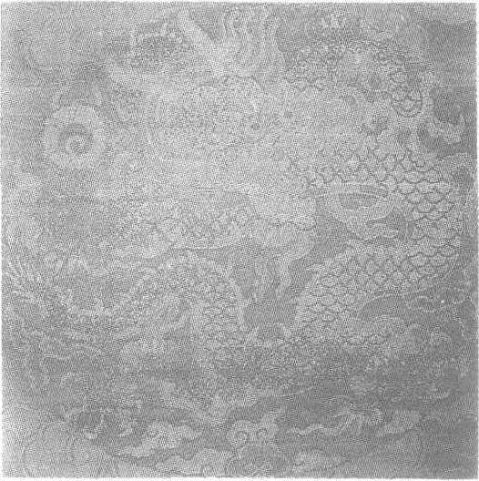 | 释义 | 团龙纹织缎明。直径36.5厘米。1958年北京市定陵万历皇帝棺内东端南侧出土。北京市定陵博物馆藏。此织缎是八团龙袍料上的一个团龙纹样,运用平金、钉线、滚针、齐针、反戏、接针、套针、商绣等多种刺绣针法,施以多种色线,在圆形范围内绣出云龙、海水、江岸及太湖石等组成的纹样。八团龙分布于龙袍的两肩、前胸、后背及前后襟下摆部位,其云纹似灵芝,龙体粗犷,毛发向后,纹样配色与袍身暗花地形成鲜明对比。