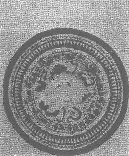 | 释义 | “济州录事”铜镜金。直径23.5厘米。1982年吉林省桦甸县常山西大顶子农田出土。吉林省吉林市博物馆藏。铜镜圆形,呈铅灰色,镜面微鼓,左侧边缘有阴文签押:“济州禄事完颜通。”背面中央有半球形钮,钮外浮雕神兽图:神兽头上有角,身上有鳞,尾端有毛,似在水中遨游,外有一周铭文“青盖做竟四夷服,多贺国家人民息,胡虏殄灭天下德,风雨时节五谷熟,常保二亲得天力。”外区饰锯齿纹、水波纹。“济州”即今吉林省农安县。“禄事”,禄与录相通,是金代诸符节镇下所设录事司的正八品官,职掌与诸京警巡使司同。“完颜”是金代女真族姓氏之一。《金史·食货志》载:“(大定二十六年)十一月,上谕宰臣曰:‘国家铜禁久矣,尚闻民私造腰带及镜,托为旧物,公然市之,宜加禁’。”此镜铭文签押说明镜是由官府监造的,符合史籍记载。