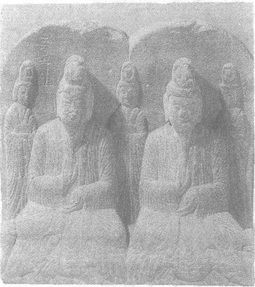 | 释义 | “王阿善”造像隆绪元年(公元527年,即北魏孝明帝孝昌三年)。高27.8厘米,宽27.5厘米。北京中国历史博物馆藏。青灰砂石制,四面造像。正面刻两名道家人物,头戴道冠,身着道袍,右手置胸前,左手拄腿上,盘膝并坐,似有所思。其后为三个袖手而立的侍女。背面上部刻童子、牛车、妇女,其旁刻“道民王阿善乘车上”;下部刻一男一女骑马而行,其后各随侍从,并注以“侄冯母妨乘马上”,“息冯法兴乘马上”十四字。左侧刻“隆绪元年十一月廿五日,女官王阿善造像二躯,愿母子苌为善居。”右侧刻“忘夫冯阿㯹”、“忘息冯義顯”。此造像为萧宝夤隆绪元年的作品,反映了当时的道教风貌。