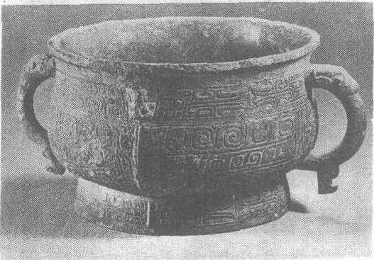 | 释义 | “用”铜簋西周。盛食器,礼器。通高11.5厘米,口径18.5厘米,腹深10.2厘米。重2.25公斤。1976年陕西省扶风县云塘村出土。陕西省周原文物管理所藏。此簋侈口,膨腹,兽首双细耳,下有垂珥呈钩状,圈足。口沿下饰夔纹带间隔浮雕牺首,腹部及圈足均饰饕餮纹。器内底铸有铭文“用乍(作)父乙(尊)彝”六字,说明此簋是“用”给他的父亲铸造的祭器。“用”这个人所作之器,著录的有用簋,铭为“用作宝彝”(见《小校经阁金文》),故此器当为同人所铸。