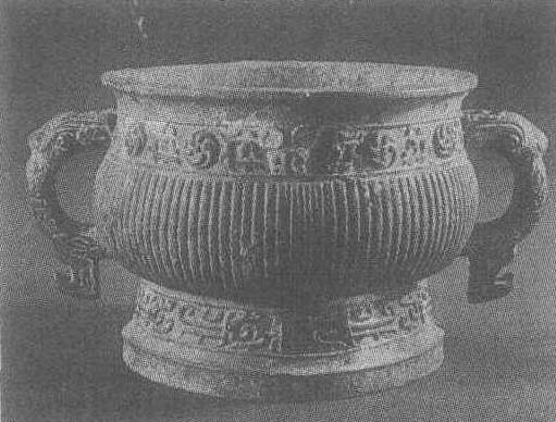 | 释义 | “白”铜簋西周。通高14.5厘米,口径18.5厘米。1961年河南省鹤壁市庞村西周墓出土。河南省博物馆藏。簋为食器,用以盛黍、稷、稻、粱,相当于现在的大碗。 《诗经·伐木》有“陈馈八簋”的记载。在西周奴隶制社会中,簋和鼎一样,也曾作为标志贵族等级的器物。此簋侈口,鼓腹,圈足,两耳为虺形。颈部饰一周浅雕夔纹和漩涡纹,前后两面各饰一饕餮,腹部为竖条鼓棱,圈足饰夔纹。器内底有铭文“白仨宝彝”四字。“白”即伯字,为西周公、侯、伯、子、男五等爵中之伯爵,表明作器人的身分。