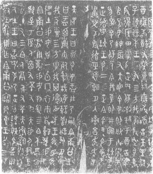 | 释义 | “盂”铜鼎铭文西周康王时期。高100.8厘米,口径78.3厘米,重153.3公斤。相传于清道光年间在陕西省眉县礼村出土。北京中国历史博物馆藏。圆形,直耳,柱足。口饰饕餮纹,足蹄兽面纹。内壁有铭文291字,为大篆体。内容为周王告盂,殷代因酗酒而亡国,周代忌酒而兴,要盂一定要很好的辅助他,敬承文王、武王的德政等。通篇铭文浑厚古朴,可以说是西周全文中的代表作之一,在书法艺术中占有重要的一页。首先是文字本身结构严谨,各部分的安排妥贴适应,无一处有荒率随意之感。文字的部首搭配深思熟虑,尤其是线条的苍劲使人为之叹服。大盂鼎铭文线条所表露出来的深沉、含蓄、浑厚、遒劲,正是历代书法家所追求的境界。故在成康时代金文中,以书法的成就言,当以大盂鼎居首位。