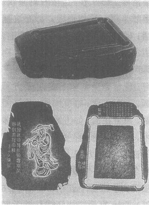 | 释义 | “绍龙”铭墨雨端砚清。长22.3厘米,宽18.3厘米,高5.5厘米。天津市艺术博物馆藏。广东肇庆端石,石质精坚,温润细腻;色苍黑。砚随石形,“井”字形砚堂,四周环水,石面内含有黑色纹点,如细雨丝丝,故名“墨雨”。砚面上端刻有周绍龙小楷题款“莘田二丈令四会时,搜三洞石制砚不下数十方,拔其尤者有十,号为十砚翁,此其一也。镌形于阴,书铭其右,有取乎砚畊之意,后之览者犹可想其丰采云。”以及阳文<绍> <龙>两方印;旁刻“目学”和“伡井山房”记述黄任在高要县任知县时搜集古砚的情况。周绍龙,字允乾,号瑞峰,福建闽侯人,雍正间进士,善书。黄任,字莘田,福建长泰人,富藏砚,工诗善书,雍正二年(公元1724年)任广东四会县知县,著有《秋江集》。