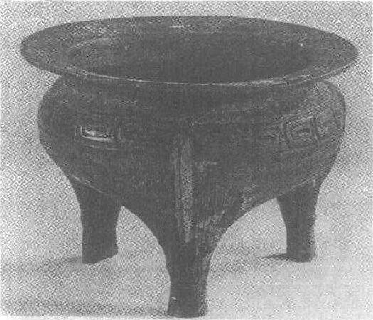 | 释义 | “荣有司爯”铜鬲西周。炊器。通高11.2厘米,口径16.3厘米,腹深7.5厘米。重1.3公斤。1975年陕西省岐山县董家村窖藏出土。陕西省岐山县文化馆藏。此鬲平沿较宽,外折,三足半实,下部略呈蹄形,三足之上各有一道扉棱。口沿下饰重环纹带,腹以下均饰直线纹,器口内铸有铭文12字,记载荣有司爯为女儿母作的陪嫁物。此器为典型的西周晚期铜鬲的式样。