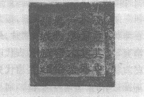 宋。边长10厘米,宽10.1厘米,边厚0.3厘米。浙江省文管会藏。铜镜作正方形,体厚重,呈黄灰色,上有绿色锈斑,背面无钮,上铸阳文隶书铭:“既虚其中,亦方其外,一尘不染,万物皆备。薛晋侯造。”共计20字。镜宽边无纹饰,约与铭文等高。