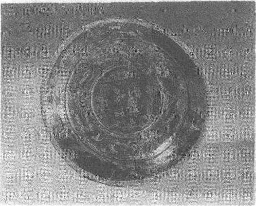 | 释义 | “蜀郡造”季札挂剑图漆盘三国·吴。直径24.8厘米。安徽省马鞍山市三国·吴朱然墓出土。安徽省文物考古研究所藏。圆形,木胎,口沿饰鎏金铜扣,盘底中心圆形开光内,绘季札挂剑徐君冢树的故事:坟茔孤树上,挂着一把宝剑,季札身着红袍,抱拳向树而立,其脚旁有两只奔跑的野兔,身后二侍者相对闲谈着。远处山脚下,有两人正探身望着徐君冢与季札,一副好奇的样子。其外一圈绘游鱼、水草、莲蕾、海浪和仙鹤等,盘边绘戏童和狩猎图。盘背黑漆底上书朱漆款“蜀郡造作牢”。