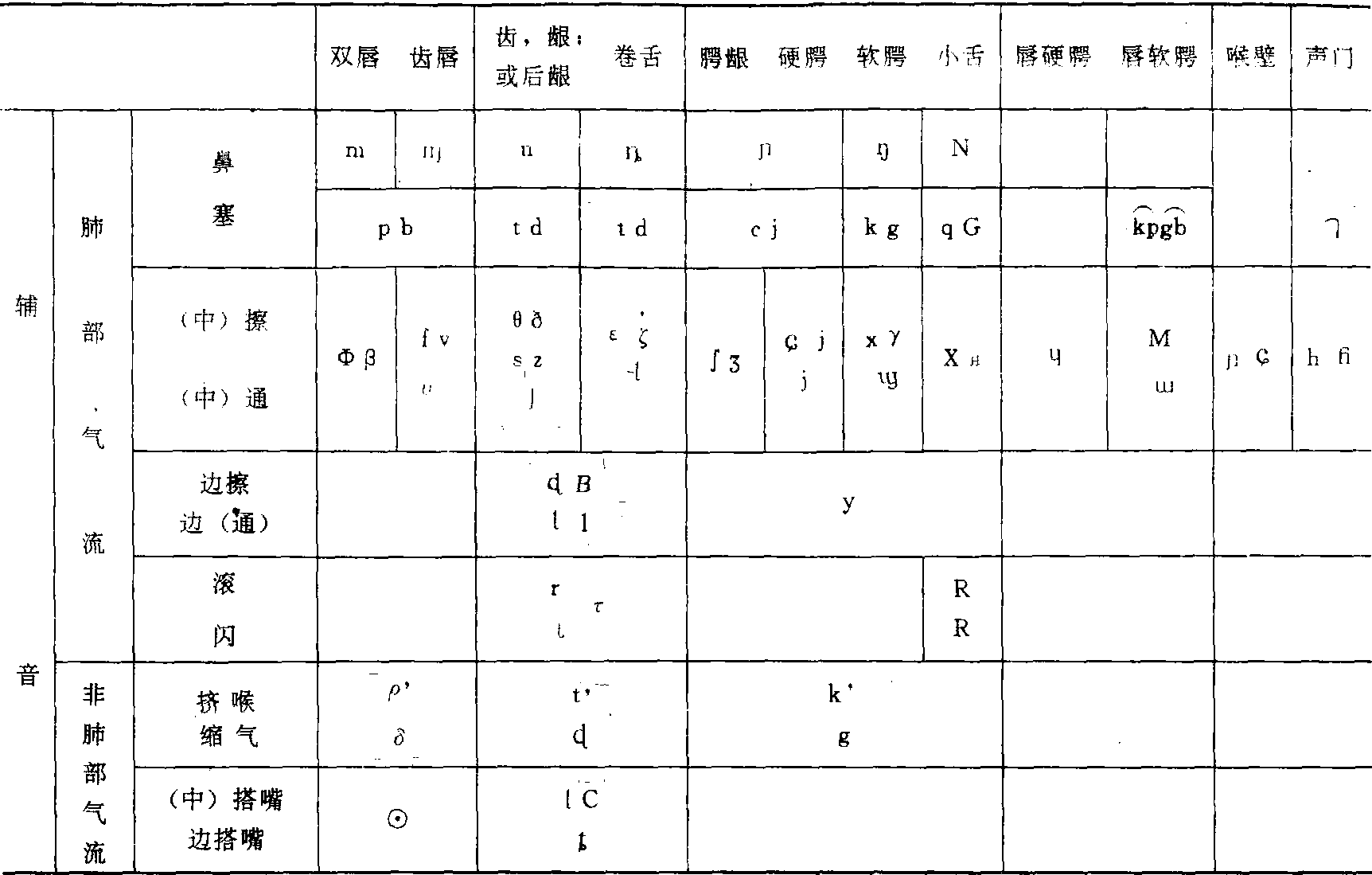 国际音标Guoji yinbiao国际语音协会设计的一套语音学记音符号。1888年拟定初稿, 经过多次修改,现在通行的是1979年修订的方案。国际音标以拉丁字母为基础, 并以改变字形和借用别的语言字母的办法加以补充,以适应描写各种语言的需要。国际音标严格以一音一符为原则, 标音精确。 附 录 国 际 音 标 (修改至1979年)
