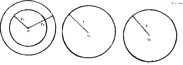 圆Yuan当一条线段绕着它固定的一端(图1中的O点)在平面内旋转一周时,它的另一端点(图1中的A点)所画成的封闭曲线叫做圆。圆还可以定义为 “平面内到定点的距离等于定长的点的集合”。这个定点叫做圆的圆心,这个定长叫做圆的半径,如图中OA, OB是圆的半径,通常用字母r表示。圆用符号“⊙”表示, 例如图中以O为圆心的圆,记作⊙O,读作圆O。我们说的圆实际上是圆周。圆周所包围的平面部分叫做圆面。通过圆心并且两个端点都在圆上的线段,叫作直径,通常用字母d表示。如图中BC是⊙O的直径。圆心相同、半径不相等的两个圆叫做同心圆。如图2中两个圆是以O为圆心的同心圆。半径相等、圆心不相同的两个圆叫做等圆。如图3中的⊙O1和⊙O2是半径相等的两个等圆。同圆的半径相等。圆既是轴对称图形、过圆心的任意直线都是它的对称轴,又是中心对称图形、圆心是它的对称中心。 图2 图3 |
