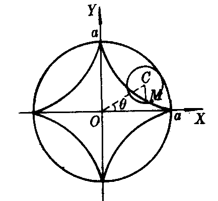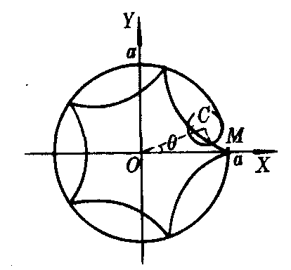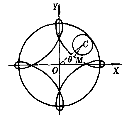 | 释义 | 圆内旋轮线yuannei xuanlunxian一动圆沿一定圆内部滚动而无滑动时,圆周上一点M的轨迹.或叫内摆线.