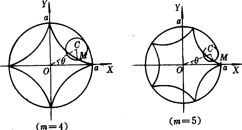圆内旋轮线的形状由m=a/b的值决定(如图1~图4).