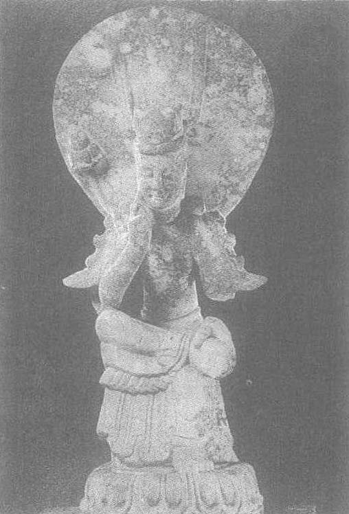 | 释义 | “邹广寿”造思惟菩萨像东魏兴和二年(公元540年)。高59.5厘米。1954年河北省曲阳县修德出土。北京故宫博物院藏。菩萨头戴冠带高扬的宝冠,右手执莲蕾并以中指抚腮,右脚搭左膝盖上,左手握右脚,身微前倾坐于墩上。左脚、坐墩下附覆莲坐。菩萨脸颊圆胖,闭着眼含蓄地微笑着,表现出思有所得的喜悦。其背后有一团扇形背光。此尊腰身细长,衣褶简括劲挺,为东魏具有代表性的作品。