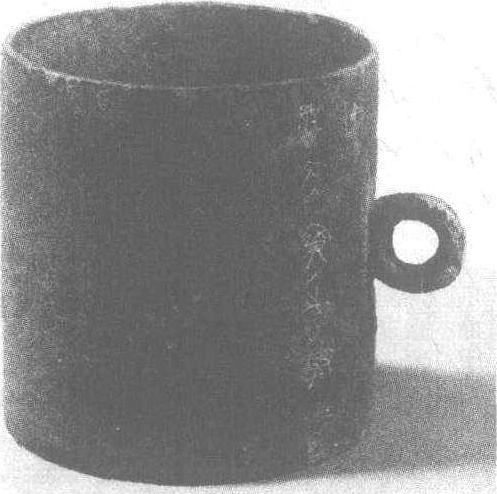 | 释义 | “郢大府”铜量战国·楚。通高12.5厘米,外口径11.6厘米,内深11.6厘米,内口径10.7厘米。容1110毫升。1976年安徽省阜阳凤台出土。安徽省阜阳地区展览馆藏。量,是古代计算容积多少的器具。此量用青铜制成,略有剥蚀,作圆筒形,广口直壁,旁有一环钮,钮的一侧器壁上阴刻铭文:“郢大𢊾之□𥬃”,其底部阴刻“少”字。“郢”是楚国都城的通称。“大𢊾”即“大府”是管理贡赋的机构。“𥬃”读𢊾,是古代盛饭的器具,一说容一斗二升,一说容五升。若以五升记,一升合222毫升。