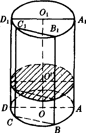 ❶圆柱的轴过两底面的圆心,并且垂直于两个底面;❷平行于圆柱底面的截面是和底面相等的圆(如图中的圆O′);❸圆柱的轴截面是矩形(如图中的矩形AA1D1D);❹平行于圆柱的轴的截面是矩形(如图中的矩形BB1C1C).