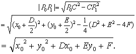 此计算公式的形式上的特点是:将圆外一点P0的坐标代入圆的方程,再取算术平方根.