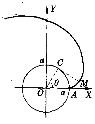 在圆盘周围绕一根不能伸缩的细线,线端栓一支铅笔,拉紧线端A逐渐拉开,铅笔尖在纸上画出的曲线就是圆的渐开线,这个圆盘称为渐开线的基圆,细线称为渐开线的发生线.