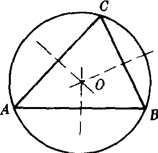 不在同一直线上的三个点确定一个圆.换言之,经过不在同一条直线上的三个点,可以作一个圆且只能作一个圆.如图,圆心在三点所连成的三角形三边的垂直平分线交点处;半径长是这个点到三点中任意一点的距离. 过一点、两点的圆有无数多个;过同一直线上的三点不能作圆. |