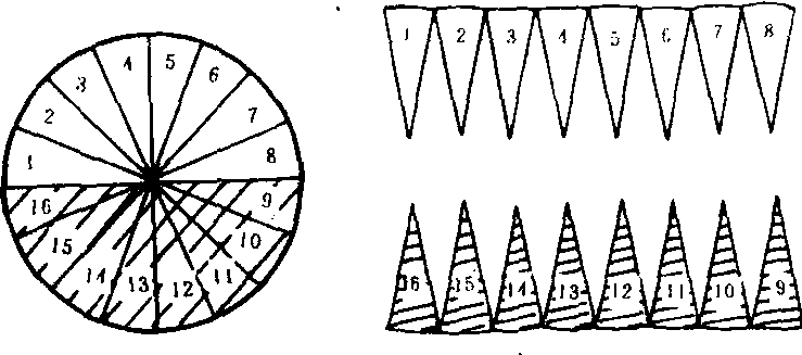 | 释义 | 圆的面积公式Yuan de mianji gongshi圆所包围的平面部分的大小。圆面积的计算公式是s=πr2。在半径为r的圆中, 当内接正多边形的边数不断地成倍增加时,正多边形的面积就越来越接近于圆的面积。如图1,AB是圆内接正n边形的一边, OD是等腰三角形AOB的高,用h来表示。所以△AOB的面积等于1/2AB·h。正n边形的面积等于△AOB面积的n倍, 即正n边形的面 图1 在小学教学圆面积计算公式时, 是通过图形的割补转化进行的。教学中,要让学生思考,能不能把圆转化成已学过的图形。在此基础上,通过直观教具的演示推导出圆面积计算公式。 ![]() 图2 图3 一般用如下方法:先在一块硬纸板上画一个圆,并把它分成若干相等的小扇形, 如图2。然后照图3那样把它剪开, 再照图4那样把它拼成一个近似的长方形。显然,如果把圆等分成的小扇形越多, 所拼成的图形就越接近于长方形。这个拼成的长方形的面积正好是这个圆的面积,而这个长方形的长就是圆周长的一半。即c/2=2πr/2=πr,长方形的宽就是圆的半径r。∵长方形的面积=长×宽, ∴圆的面积=πr×r=πr2。 ![]() 图4 |