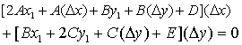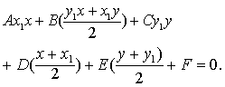 证 设Q(x1+△x,y1+△y)是曲线上和P (x,y)点邻近的点,则 Ax21+Bx1y1+Cy21+Dx1+Ey1+F=0 A(x1+△x)2+B(x1+△x)(y1+△y)+C(y+△y)2+D(x1+△x)+E(y1+△y)+F=0 两式相减,并整理,得