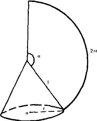 | 释义 | 圆锥的侧面积Yuanzhui de cemianji把母线长为l,底面半径为r的圆锥侧面,沿着一条母线剪开,并把它展平, 便得到圆锥的侧面展开图。由于圆锥母线的长都相等, 它们相交于圆锥的顶点,因此,它的侧面展开图是一个扇形,如图。这扇形的半径就是圆锥的母线l, 弧长是2πr,圆锥的侧面积就是这个扇形的面积,即s=πrl。设扇形的圆心角为α,则α=2πr/l·180°/π=r/l×360°。在制作圆锥时,可根据这个公式求出α的度数, 这样再画出扇形。 |