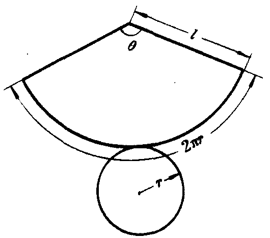 圆锥的侧面展开图是一个扇形,扇形的弧长等于圆锥底面圆的周长,扇形的半径等于圆锥的母线长l.设扇形中心角为θ,则有.圆锥的表面展开图如图所示.