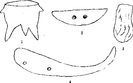 (1.陶鬲2. 石刀 3. 石镐 4. 青铜刀) |