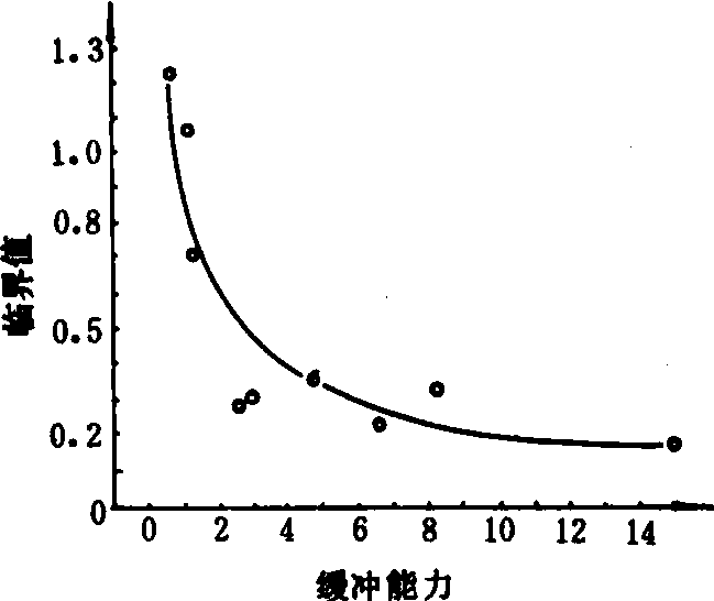 当IA及IB以同一数量减少时,则ΔIA=ΔIB时,则ΔQA>ΔQB。也就是说,当植物从两种土壤中吸收同样数量的磷素后,缓冲能力大的土壤将有更多的磷转入溶液,从而具有保持溶液磷浓度更大的能力。亦即土壤溶液中磷浓度的降低要小得多。通常,随着土壤养分缓冲能力在一定范围内的增加,其最适浓度临界值也相应降低(图2)。