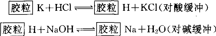 土壤在加入酸性或碱性物质时所呈现的抑制其酸碱度急剧改变的性能。土壤具有缓冲性的机理,主要是土壤胶体的离子交换作用,其反应如下: