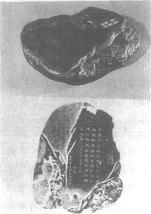 | 释义 | “高兆”赤壁端砚清。长27.2厘米,宽21.6厘米,高4.5厘米。天津市艺术博物馆藏。广东肇庆端石,色苍黑,石质精润。砚随石形,正面雕镌一幅高山、流水、明月、飞云夜景图,其右上方铭刻:“高风千古”、“秋涛”。背面刻峡谷及一小舟,舟上两人正吟诗对歌,其上铭刻:“守其静也如仁,而动则惟水;扩其动也如知,而静则惟山。得仁知之乐者,善其用于山水之间。壬辰长至吴秉钧铭。”下钤阳文“琰”“青”两方印,及“庚申季冬归于浪畊堂”铭款;又铭:“吾是苏公赤壁,千古英雄陈迹;聊供几案卧游,珍重端溪片石,固斋高兆。”高兆,字云客,号固斋。喜鉴赏古砚,藏砚甚多,著有《端溪砚考》。吴秉钧,清康熙时人,称贞隐先生。