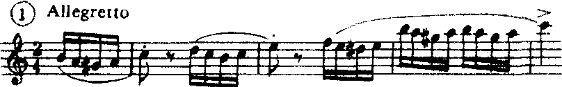 ❷“B”:在C大调上奏出的朴素明快的主题。与“A”形成对比。