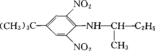 | 释义 | 地乐胺butralin苯胺类选择性芽前除草剂。化学名称:N-另丁基-4特丁基-2,6-二硝基苯胺。化学结构式如下。原药为橘黄色结晶体,25℃密度1.25,沸点134~135℃ (66.7Pa),熔点55~60℃。30℃时蒸气压为44×10-6 Pa,微溶于水,易溶于甲苯、二甲苯、丙酮等有机溶剂,溶于 乙醇、异丙醇。265℃分解,能被杂草幼芽吸收,抑制分生组织的细胞分裂,从而抑制幼芽及幼根生长,导致死亡。适用于大豆、豌豆、棉花、水稻、玉米、花生、甜菜及蔬菜田使用。防除稗草、马唐、狗尾草等一年生禾本科杂草及藜 、苋等双子叶杂草,对大豆菟丝子有良好效果。对人、畜低毒、大鼠急性口服LD50为2 500 mg/kg,急性经皮LD50为4 600 mg/kg,急性吸入LC50为50 mg/L,对鱼低毒。