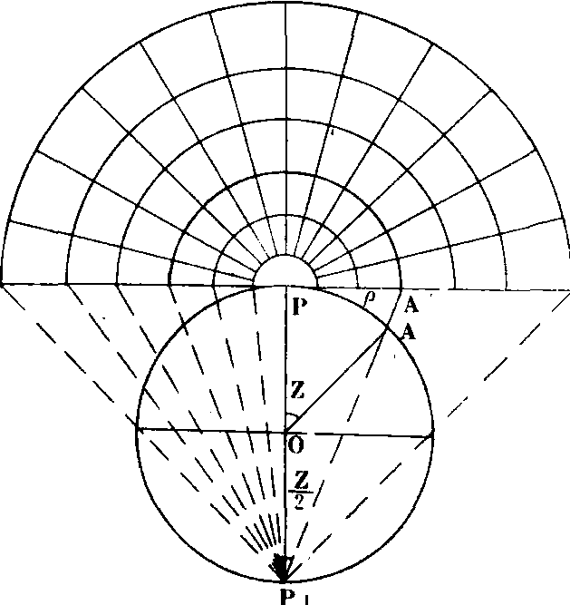 | 释义 | 地图投影ditu touying按照一定的数学法则将地球椭球面上的经纬线转移到平面上的方法。也就是使地球椭球面上各点的地理坐标与平面上各点的直角坐标(或极坐标)保持一定的函数关系。地球椭球面是曲面,而地图是绘制在平面上,因此制图时首先要把曲面展为平面。然而地球椭球面是个不可展的曲面,假如把它直接展为平面,必然发生破裂或褶皱,用这种具有破裂或褶皱的平面绘制地图,显然是不实用的。所以必须采用数学方法将曲面展为平面,以保持平面上图形的完整和连续。地图投影方法很多,但不论采用什么投影方法所得到的经纬线网形状都不可能与地球椭球面上的经纬线网形状完全相似。这表明投影之后地图上的经纬线网发生了变形,因而根据地理坐标展绘在地图上的各种地理事物也必然随之产生变形。变形主要表现在三个方面: 长度变形、面积变形和角度变形。变形是不可避免的,但若给予一定的条件,如等角条件,等积条件,则可使其中某种变形等于零,用以满足不同用途对地图投影的要求。按变形性质地图投影可分为三类: 等角投影、等积投影和任意投影(包括等距投影)。 地图投影Ditu touying按照一定的数学法则将地球椭球面上的经纬线相应转移到平面上的方法。即把地球椭球面上各点的地理坐标值变换为平面上各点的直角坐标。地球椭球面是一种不可展曲面,将其表现到平面上,必然会发生裂隙或褶皱。若用这种具有破裂或褶皱的平面绘制地图,显然是不实用的。所以需要采用地图投影的方法,将曲面展为平面,以保持平面上图形的完整和连续。地图投影的方法很多,用不同的投影方法得到的经纬线网形式不同,但不论用什么投影方法得到的经纬线网,其形式总和球面上的经纬线网不完全相同。这表明投影之后地图上的经纬线网发生了变形,因而根据地理坐标展绘在地图上的各种地面景物也必然随之发生变形。变形主要表现在三个方面:长度变形、面积变形和角度变形。变形是不可避免的,但若给予一定的条件,如等角、等积条件,就可使其中某种变形等于零,以满足不同用途对地图投影的要求。例如,需要根据地图估量农业用地面积,这时地图就不应存在面积变形;如果要在地图上标绘航海线成航空线,则地图就不应在方向上有变形。另外,最好使地图中央部分具有最小的变形,或者使变形适于表示成图国家的轮廓,或沿某些方向上均无变形等等。按变形性质地图投影可分为三类:❶等角投影(如等角方位投影等)。由于没有角度变形,多用于编制航海图、洋流图和风向图等(如图)。