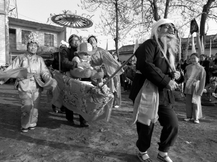 | 释义 | 地故事diɡushi民间传统舞蹈小品。又称跑故事、跑社火。表演故事时“跑”是主要动作和表现特征,故名。渊源较早,产生于清同治时期的“观灯”,编创于清末的“打酸枣”和“五女逛会”,均以“躜躜步”为基本步法,步履轻快,富有弹性,表演时如水上漂一样,旦和丑的步法可根据感情的变化,增添拧转的特点。内容包括祈求风调雨顺、草茂粮丰,有的歌颂英雄和爱情,还有的宣扬鬼神之道。队形变化多样,图案丰富多采,有“单扭门栓”、“双扭门拴”、“扭四门”、“剪子桄”、“龙摆尾”、“走月牙”、“白马分鬃”、“单辫蒜”等,每一种图形变化之后,都以“逗马”、“押马”两个基本动作传承衔接下一个队形图案,套路严密,结构紧凑,有着浓郁的乡土气息和生活情趣。其音乐伴奏,基本为大鼓,再配以铙钹铜锣,其声宏大、浑厚。鼓点多以“八点鼓”,节奏快慢可根据舞蹈需要调整,以烘托气氛为主。舞蹈夸张、滑稽,动律鲜明,融寓意与幽默为一体,具有浓郁的喜剧色彩。以过年、重大节日演出为多。