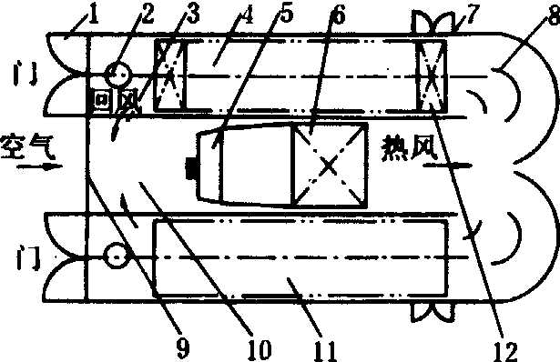 图3 地热水烘干平面示意图 1.烘道进口; 2.排潮风口; 3.回风可调风门; 4.左烘道; 5.风机; 6.热交换器; 7.烘道出口; 8.导风板;9.空气可调风门; 10.混合室; 11.右烘道; 12.烘车 地热水灌溉 有的地热水含有利于农作物生长的化学元素(如钾、钙、硫等),并符合“农田灌溉水质标准”,可以进行农田灌溉加温,起到防治病虫害、增加肥效、缩短作物生长期、促进增产的作用。中国云南省的热泉出露地区,农田不施用钾肥,因地热水中钾的含量比冷水(包括地表水和浅层地下水)高1至20倍,可增产粮食约1倍。 地热在农业方面还可用于为沼气池加温,为牲畜洗浴。 在轻纺工业(染织、洗涤、染色、缫丝)、食品加工业(屠宰、酿造、热矿泉水饮料)、造纸、烤胶、水泥制品加工、木材烘干、皮革加工等方面也均有应用。 利用地热须合理开发,适量开采;实行梯级利用和综合利用,避免浪费;要处理好尾水排放,避免对周围环境的热污染和产生耕地板结;地热水中有害元素要妥善处理,避免造成对动物、植物的危害;长期使用地热水要进行回灌,避免导致地层塌陷(见地热水污染、地热资源保护)。 |