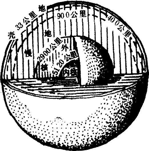 | 释义 | 地球的内部圈层diqiu de neibuquanceng指由地壳到地核的圈层构造。因为地球内部的构造不能直接观察到,主要是利用地震波在地球内部传播情况作为划分地球内部圈层构造的依据。大约在陆地地壳平均33公里深处,纵波速度为7.6公里/秒,横波为4.2公里/秒,向下纵波急增为8.1公里/秒,横波为4.6公里/秒。这个波速不连续面称为莫霍洛维奇不连续面,简称莫霍面。在距地表2900公里深处,纵波速度由13.64公里/秒突然降为8.1公里/秒,而横波至此完全消失,这个不连续面称为古登堡面。根据这两个不连续面将地球内部划分为三个圈层: 地壳、地幔和地核 (图1)。