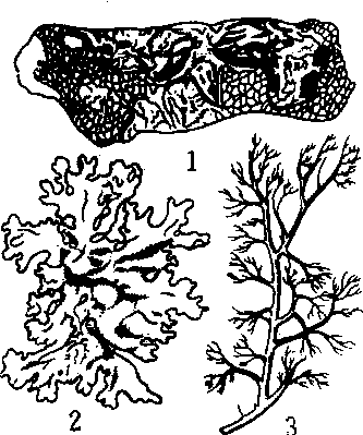 地衣 1.壳状地衣 2.叶状地衣 3.枝状地衣 |