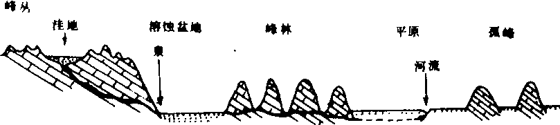 图4 峰丛、峰林和孤峰 |
