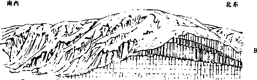 图2 黄土剖面素描图 1. 三趾马红土; 2. 午城离石黄土; 3. 马兰黄土 |