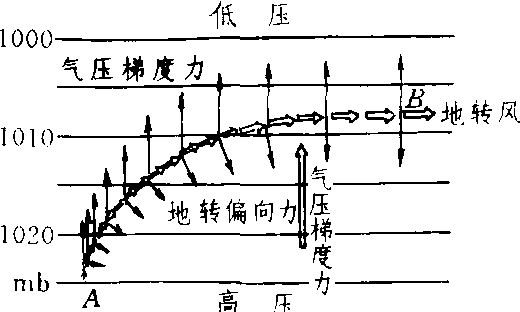 | 释义 | 地转风dizhuanfenggeostrophic wind自由大气中没有加速度的风。它是在平直等压线(或平直等高线)情况下,不考虑摩擦作用, 当水平气压梯度力(