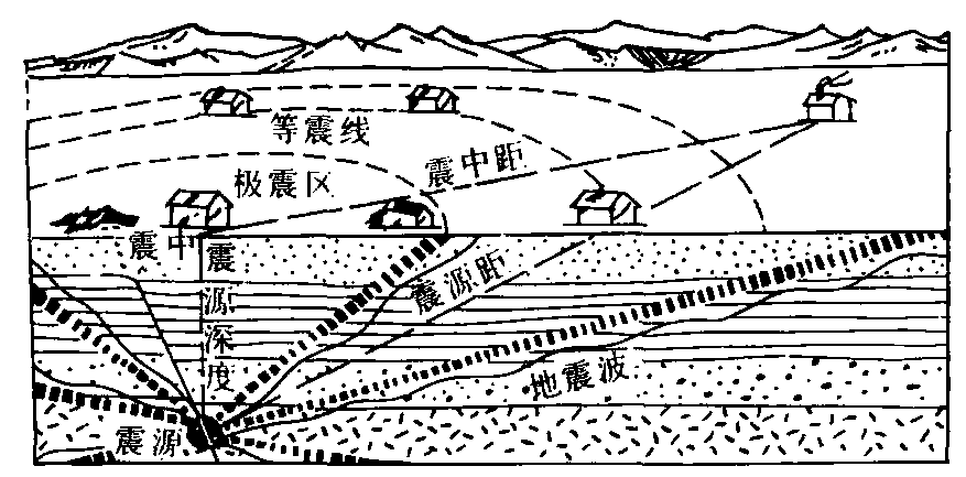 等震线图解 地震又称“地动”。大地发生的突然震动。广义包括天然地震和人工地震两类。一般仅指天然地震,主要由地壳内的瞬间破裂变动所引起。 地震Earthquake地球内部的变动引起的地壳的震动。加拿大平行山脉、西海岸和近海、育空地区、北极高原、东部和东部沿海为地震多发带。平行山脉地区多发生弱震或中强度地震,最大的一次发生在不列颠哥伦比亚省堆霍普附近,震级为8级。在西海岸,温哥华岛和乔治亚海峡板块挤压活跃,常发生地震。近海是太平洋中两大板块的交界处,加拿大强度最大的地震就发生在该地区,但对陆上居民生活影响不大。育空地区的马更些山脉、波弗特海和一些北极岛屿也是地震多发区。1933年,巴芬湾就发生过一次7级地震。加拿大东部地震区遍布阿巴拉契亚山脉北段。1982年,新不伦瑞克省的米拉米契地区发生过一连串的5级地震。圣劳伦斯河入海口、拉马尔拜河谷地区和魁北克西部曾多次发生地震。1925年的一次7级地震波及整个加拿大东部,美国东北部也受到影响。加拿大能源矿业和资源部下设的全国地震网负责监测地震,全国大概有100台地震仪。 地震由于地壳或地幔上部突然位移和断裂而引起的地下震动和地面振动,能以弹性波形式传播很远的距离。地震的强度以震级估算或以烈度测算。已经知道的有两大地震带: 太平洋地震带,包括环太平洋沿岸; 地中海地震带,西起比利牛斯半岛,经过欧亚大陆南部,东至马来群岛。在大洋范围内,地震活动性大的地区在洋中脊。最著名的灾害性的地震有: 1755年的里斯木地震; 1906年的加利福尼亚地震; 1908年墨西哥地震、1948年的阿什哈巴德地震; 1960年的智利地震,1976年的唐山大地震。 地震俗称地动。大地突然发生的震动。地震分为2类:❶自然作用产生的地震,如火山地震,构造地震等为“天然地震”。 ❷人为因素造成的地震,为“人工地震”。天然地震突发性强,产生的后果对社会的危害性大,特别是强震、巨震,最为人们所关心。全世界每年发生的天然地震500万次以上,人能感觉到的约有50000次,能造成破坏的约有1000次,造成灾害的每年10余次,8级以上的巨震每年1~2次。地球上平均每年发生的各级天然地震次数:8.0~8.9级1次,7.0~7.9级18次,6.0~6.9级120次,5.0~5.9级800次,4.0~4.9级6200次,3.0~3.9级49000次,2.0~2.9级100000次,<2.5级4850000次。人为地震是人们修工程、开矿采石用炸药爆炸地表或地下岩体导致的地震。一次100万t级的氢弹在花岗岩中爆炸,大约相当于1次6级地震释放的能量。水库地震可达到6.5级。 地震据晋代出土的《竹书纪年》记载:夏代“帝发七年,陟,泰山震”。这是世界上最早的地震记录。地震时间在公元前1768年(一说公元前1621年)。关于地震的原因,在春秋战国时期齐鲁文化典籍中有最早的探讨。鲁国人左丘明《国语》记伯阳父解释幽王二年(公元前780年)镐京大地震时,三川竭(指泾水、渭水、洛水枯竭)、歧山崩的原因,是阳气潜伏,被阴气压得不能上升,于是发生地震。这种阴阳元气说,有朴素唯物主义的因素。公元前6世纪《晏子春秋》记述齐国大夫晏婴与别人的对话,把地震的发生看成是与某些天体运行有关。这是天文因素说。关于震前征兆之一的地下水异常,在《寿光县志》中有较早的记载。1668年7月25日寿光“未震之前一日,耳中闻河水汹汹之声,遣子探试,亦无所见,或云先一日弥丹诸河水忽涸。” |
