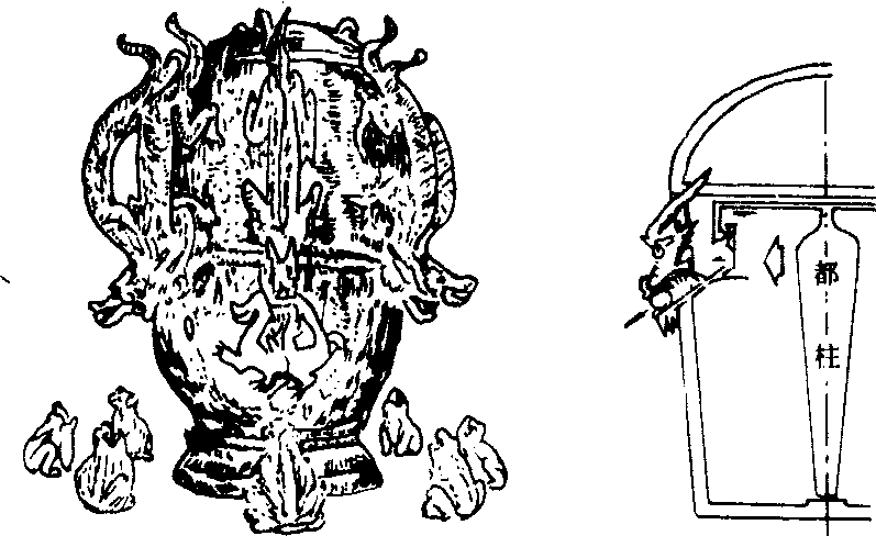 图1 侯风地动仪 左:模型 右: 内部结构纵切面