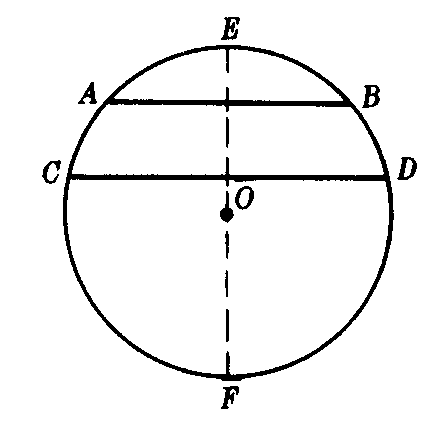 图2 这个定理叫垂径定理,它有以下几个推论: ❶平分弦(不是直径)的直径垂直于弦,并且平分弦所对的弧; ❷平分弦所对的一条弧的直径,垂直平分弦; ❸弦的垂直平分线经过圆心,并且平分弦所对的弧; ❹圆的两条平行弦所夹的弧相等.如图2,在⊙O中,弦AB∥CD,则 ![]() |