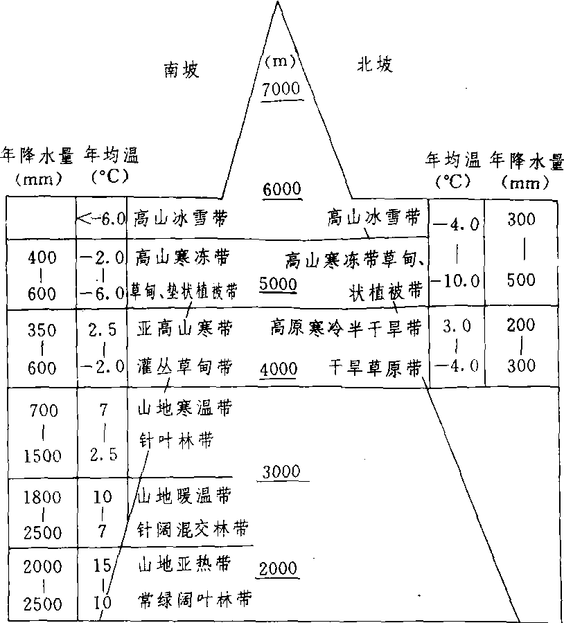 珠穆朗玛峰地区的垂直气候带及植物分布 |