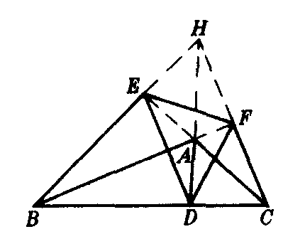 连结非直角三角形三条高线的垂足的三角形.如图1,在锐角三角形ABC中,AD⊥BC于D,BE⊥AC于E,CF⊥AB于F,则△DEF叫△ABC的垂足三角形.不难证明,原三角形的垂心是它的垂足三角形的内心:由A,B,D,E四点共圆,知∠BED=∠BAD,即∠BED是∠ABC的余角.同理,由B,C,E,F四点共圆,知∠BEF=∠BCF,∠BEF也是∠ABC的余角.所以EB是∠FED的平分线.同理FC是∠EFD的平分线.