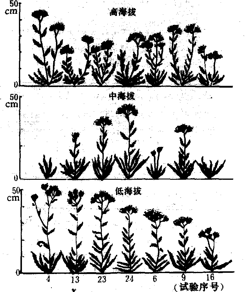 蓍草植株对海拔高度的反应 基因型和表现型机体的基因组合形式称基因型或遗传型。它是从双亲获得的全部基因的总合。人类结构基因约有5万对以上。其基因型也是无数的,无法表示。遗传学常使用的基因型,是指某一种性状的基因型。如白化病的基因型小写字母cc,它只表示这一对等位基因不能产生酪氨酸酶。表现型是指机体所有性状的总合。它是具有某一基因型的个体表现出来的遗传性状,但机体的表现型也是无法具体表示的。遗传学常使用的表现型,也是指机体发育的某一具体性状。如体内不能产生酪氨酸酶,导致不能形成黑色素,则表现出全身皮肤、毛发为白色,视网膜无色素等的白化病。从父母获得的基因型,是子代个体发育为某种性状的表现型的遗传基础。但有时表现型由于受环境某种因素的影响,可以使致病基因型不起作用,表现型可以是正常的。如苯丙酮尿症,用食物控制疗法,可以不表现出病症。这就是利用环境条件,使不良基因型的表现型得到改善的例子。 |