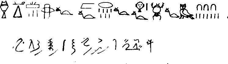 | 释义 | 堆算Duisuan古代埃及人把未知数称为“堆”,本意似乎是指数量未知的谷物的堆。阿默斯纸草书(参见该条)中有一类关于“堆算”的问题,其中一个是:“有一堆,它的2/3、它的1/2、它的1/7,再加上它的全部,共为37”, 下图给出了这一问题的埃及象形文字写法和经简化的僧侣文字写法: 上面两个问题在今天看来都属于一元一次方程问题。但是,如果据此就认为古代埃及人已经有了一元一次方程的明确概念,理由就不十分充足了。实际上,在中国 《九章算术》中有一类“衰分”问题(参见“比例分配”),可概括为:把总数是A的一批物品按照比率a1:a2:a3: ……:an分为n份,用今天的数学符号表示就是: 已知 x1+x2+……+xn =A x1:x2: ……: xn=a1: a2: ……: an 求 x1, x2, x3, ……, xn 这与阿默斯纸草书第63题是十分相似的。《九章算术》是用比例算法求解的。 ![]() 这实质上就是阿默斯纸草书中的方法。因此,实际的情况应该是:埃及人熟练地运用比例算法,解决了今天可归入一元一次方程的一些问题。 由阿默斯纸草书第63题, 还使我们联想到中国《孙子算经》 (参见“算经十书”) 中著名的 “河上荡杯”题:“今有妇人河上荡杯(注:荡杯,即洗碗)。津吏问曰: ‘杯何以多?’ 妇人曰: ‘家有客。’ 津吏曰:“客几何?’妇人曰: ‘二人共饭(注:二人共用一只碗吃饭),三人共羹, 四人共肉,凡用杯六十五,不知客几何。’”解法是:“置六十五杯,以一十二乘之,得七百八十,以一十三除之,即得。”由这一过程可明确看出,《孙子算经》的作者是用求解一元一次方程的方法解这道题的。用今天的记法, 设人数为x, 由已知: ![]() |