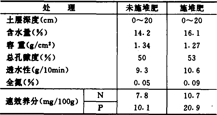 图2 圆形半坑武堆积层次 普通堆肥 是在稍嫌气较低温条件下腐熟的,腐解较慢,堆内温度稳定,通常变动在15~35℃之间。堆积方式有地面式和地下式两种:❶地面式。适于气温高,雨量大,地下水位高的地区采用。堆宽2米,高1.5~2.0米,长度视材料数量而定。先夯实地面,铺9~12厘米厚的碎草或泥炭,然后铺15~25厘米厚的堆积材料,加适量水和石灰,再加细土和粪尿等。如此层层堆积并踏实,堆至预定高度后,封泥5厘米厚,以减少水分蒸发。1个月后翻堆。一般夏季2个月,冬季3~5个月腐熟; ❷地下式。在田头或住宅边挖一土坑,将堆积物投入坑内,直至与地面相平为止,表面盖土或封厚约5厘米的麦秸泥。1~2个月后翻倒,并加入适量的人粪尿和水,上面仍用泥覆盖。夏秋季1~2个月,冬季3~4个月,即可腐熟。 腐熟过程 堆肥的整个腐解过程,是一系列微生物活动的复杂过程,包含着堆肥材料的矿质化和腐殖化过程。堆腐的初期,矿质化过程占优势,后期则以腐殖化过程占优势,两者互相转化。 腐熟条件 因为堆肥的腐熟是多种微生物交替活动的过程,因此控制与调节好堆肥中微生物活动的条件,是获得优质堆肥的关键,其主要因素有:❶水分。堆肥中保持适当的含水量,是促进微生物活动和堆肥发酵的首要条件。秸秆等堆积物吸水后膨胀软化,有利于微生物分解和菌体、养分的移动,使堆积物腐熟均匀。堆肥的适宜水分是堆肥材料最大持水量的60%~75%; ❷通气。堆肥前期应以好气性微生物分解为主,通气可促进好气纤维分解菌活力和氨化、硝化作用的进行,加速有机物质的矿质化。而后期以嫌气性为主,有利于提高腐殖化系数和养分的保存,一般通过加水、堆垛紧实度和设置通气沟、通气塔等措施调节堆内的通气条件; ❸温度。纤维分解菌,包括细菌和真菌,在温度65℃时分解活动最为强烈,通常采用加入骡、马粪接种高温纤维分解菌,调节堆的大小,控制水分和通气等措施,达到调节温度的目的; ❹养分。微生物活动需要养分和能量,在秸秆等未腐熟前,速效性养分很少,因此堆积物中须添加一定量的速效性养分,以供微生物活动需要。在一般情况下,每个菌体同化1份氮素时平均需要4份碳氧化所提供的能量,据此,C/N小于25∶1时,将释放出无机氮,而大于25:1时,有机物分解时须从外界吸收无机氮。通常在堆积物中加入人粪尿、豆科绿肥及化学氮肥(不宜用硝态氮肥)等,以调节堆肥材料中的碳氮比至40~45:1为宜,这样能腐熟较快又能有较高腐殖化系数。据试验,在堆积物中加入2.5%的过磷酸钙或钙镁磷肥,可促进腐熟,减少氮的损失; ❺酸碱度。中性和微碱性条件最适宜微生物的活动和繁殖,但堆肥分解过程中,会产生有机酸和碳酸,降低堆积物的pH值,不利于微生物的活动,通常加入石灰、草木灰(石灰用量为堆积材料量的2%~3%,草木灰为3%~5%)等碱性物质加以调节酸碱度。同时石灰等碱性物质还可破坏秸秆表面的蜡质层,有利于吸收水分,促进腐熟。 腐熟度的鉴别 通常可从颜色、软硬度及汁液颜色等外观状况加以判断。半腐熟的呈暗黄色,汁液为棕色,材料变软,较易拉断,可捏成团,但撒手即散,有臭味。腐熟的为黑褐色,汁液呈淡棕色或无色,材料完全变形,很易拉断,碳氮比为10~20∶1,体积较原来下陷1/2~1/3,腐殖化系数在30%左右。 施用技术 堆肥施用与厩肥相似,一般用作基肥,可结合翻地时施用,与土壤充分混合,达到土肥相融,用量每公顷22500~37500千克。 在砂性土壤或在生长期较长的作物上施用,宜用半腐熟堆肥;在粘质土壤或在干旱低温,作物生长期短的等宜用腐熟较好的堆肥。据研究在粘质黄土上连续3年施用垃圾堆肥,土壤的物理性质及养分含量均有显著的改善(表2),长期施用堆肥,对建设旱涝保收,高产稳产的农田具有良好的作用。