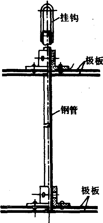 图1 极板式水位传感器 1.下极板; 2.钢管; 3.上极板; 4.套管; 5.挂环
