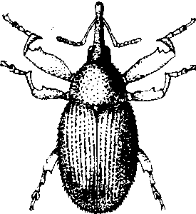 成虫在棉花残株落叶、棉秸堆、篱笆、仓库堆房附近以及树林的落叶内、树皮下等隐蔽场所越冬,翌年6月下旬开始迁入棉田,取食棉苗和棉蕾,产卵于棉蕾、棉铃内,一个花蕾内只产一卵,每雌产卵100~300粒。幼虫在棉蕾或棉铃内为害,并在其中化蛹,蛹期约5天。每发生一代,平均约25天。在美国年生3~4代,在中美洲棉区年生8~10代。棉花成熟后,成虫离开棉田,可作约60公里的远距离迁移扩散。经过体内脂肪储备时期,然后寻找越冬场所,越冬成虫可活7个月以上,最低致死温度为-11.5℃(1天)。如温度低于-6.7℃的天数在10~14天以上,越冬成虫大部死亡。 对来自美洲的棉籽实行严格检疫,即使是皮棉亦须检查。60年代以前,主要应用对硫磷、狄氏剂、艾氏剂、保棉磷、马拉硫磷等防治。为减少喷药次数,避免污染环境,美国积极提倡综合防治,包括采用抗虫品种、栽培措施、性引诱剂和释放不育昆虫等,已在大面积棉田应用外激素grandlure诱杀,效果很好。还可将外激素与化学不育剂、农药等合用。美国研究用墨西哥热带地区不滞育的黑色品系和美国棉区滞育的红色品系杂交,已获得了一种使此虫有98%不能滞育的青铜色品系,试图通过田间释放,造成害虫自然种群的绝灭。 墨西哥棉铃象甲cotton boll weevilAnthonomusgrandis Boheman,昆虫纲,鞘翅目,象甲科。中国对外植物检疫对象。分布于美国、墨西哥、危地马拉、哥斯达尼加、古巴、海地、萨尔瓦多、尼加拉瓜、委内瑞拉、巴西。寄主有棉花、野棉花、木槿、桐棉。成虫体长3~8 mm,红褐至红黑色,被灰至褐色茸毛。前足腿节粗大,有2齿,内侧一齿较长而壮;中、后足腿节仅有一齿。成熟幼虫体长约8 mm,白色,腹部气孔为二孔形。在美国一年发生2~3代。以成虫在落叶内,树皮下等场所越冬。成虫喜产卵于棉蕾内。成虫、幼虫都严重为害棉花。宜加强检疫措施,防止传入。