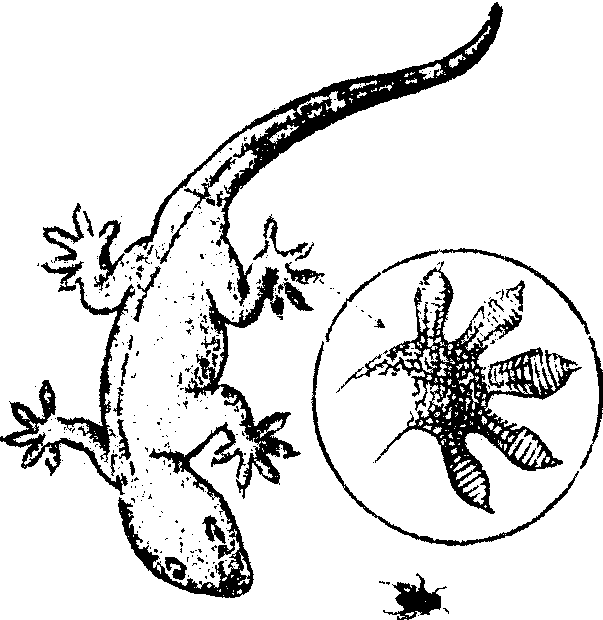 | 释义 | 壁虎bihuGekko japonicus脊椎动物,爬行纲,壁虎科。也称多疣壁虎,或通称守宫。为原始的小型爬行动物,体分头、颈、躯干、四肢和尾5部分。身体背腹扁平,长达10~12厘米,背面暗灰色,有黑色带状斑纹。体背具有镶嵌排列的多数疣鳞,枕部有较大的圆鳞。眼大、没有活动眼睑,5个指、趾间无蹼。指、趾底面扁平扩大,具有由皮肤褶襞形成的皮瓣,上有无数细微腺毛,有粘附能力,适于在平滑的物体上爬行。受惊扰时,尾易自切,断落的尾,因内部的神经和肌肉暂时末死,尚能颤跳,但日后多能再生短尾。夜晚常在屋檐下、墙壁上或电线杆的灯下活动。舌宽,能伸出捕食蜘蛛和飞蛾、蚊、蝇等,白天多隐蔽在暗处。壁虎为有益动物,我国除东北、西北外,其他各省均有分布。